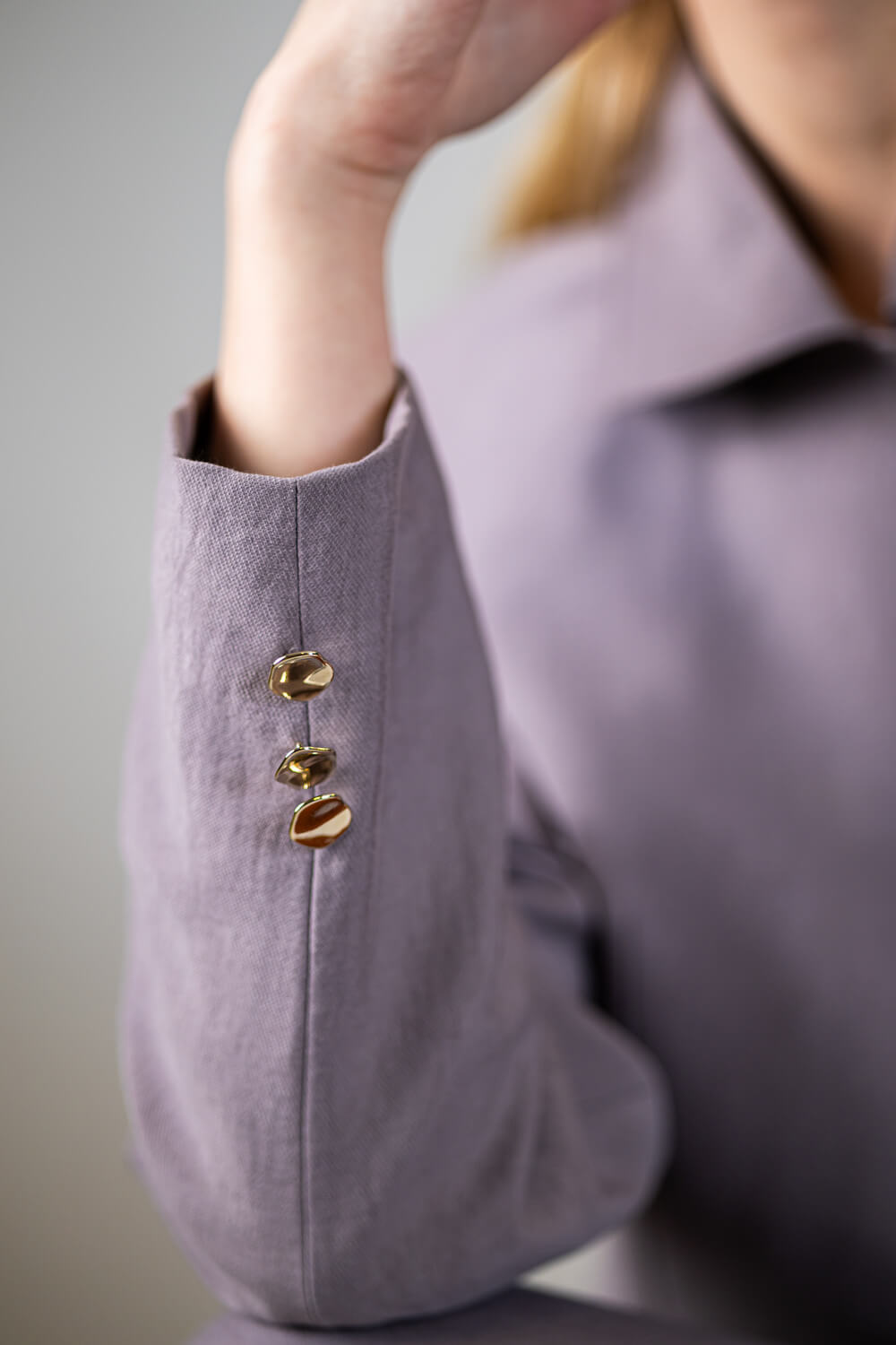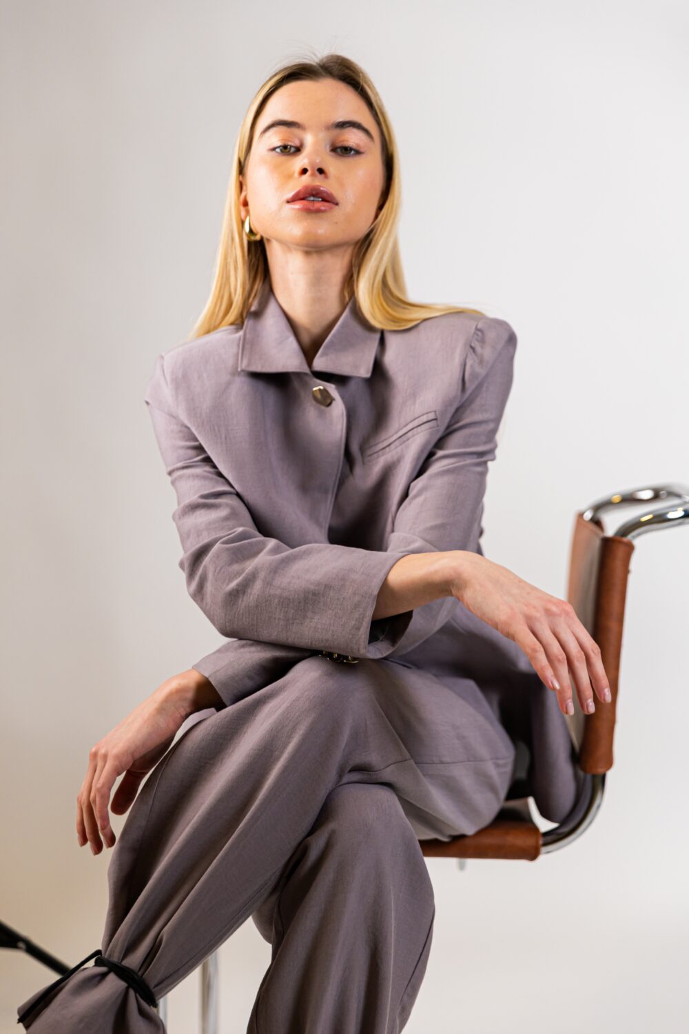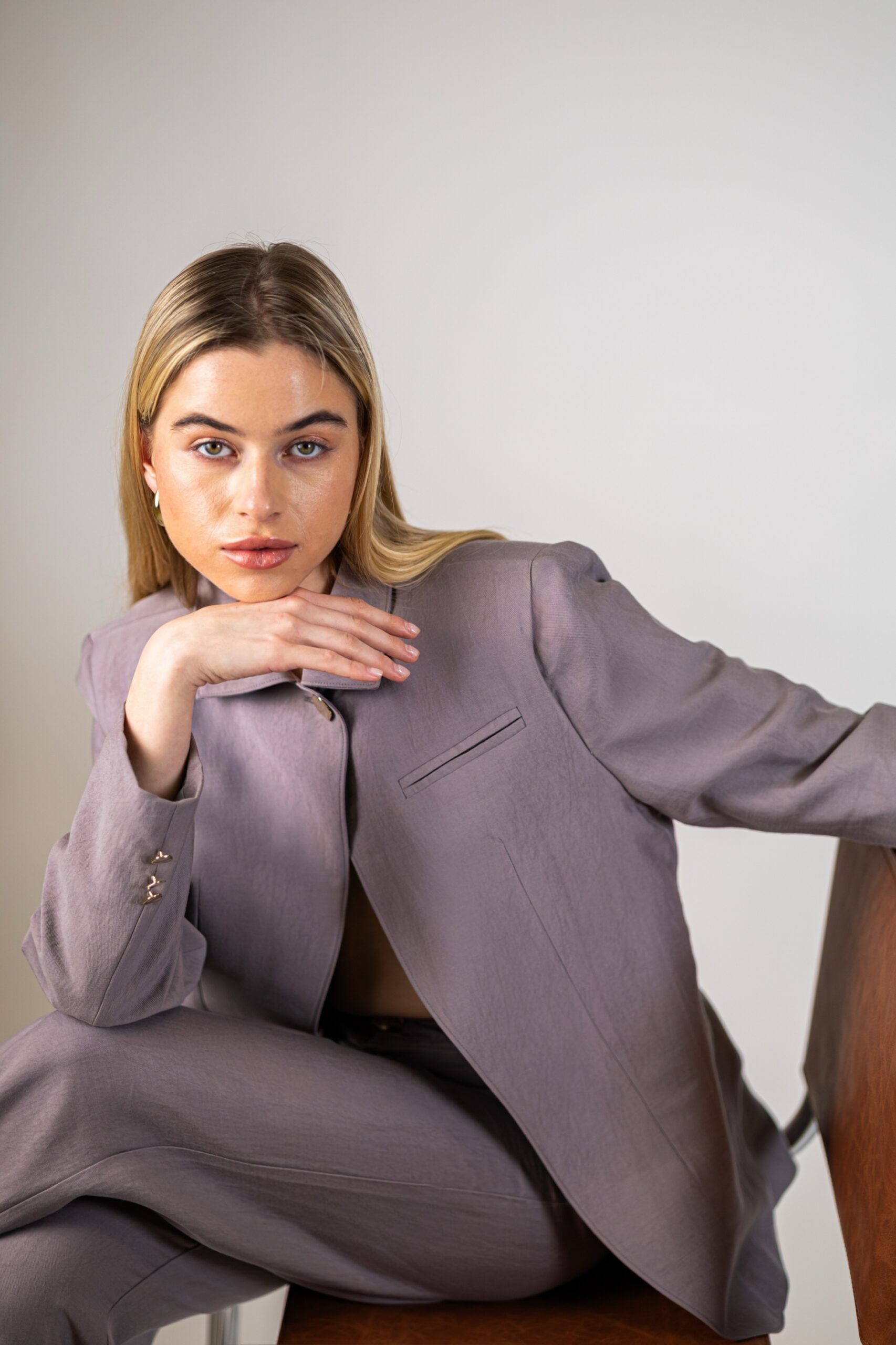 Zamansız çizgilere sahip Brickell Ceket, gri modal kumaşın akıcı dokusunu gold düğme detayıyla buluşturur. Gömlek yakası ve tek düğmeli formu, klasik duruşa modern bir yorum kazandırır. Gün boyu konfor sunarken her kombine güçlü bir zarafet katar.