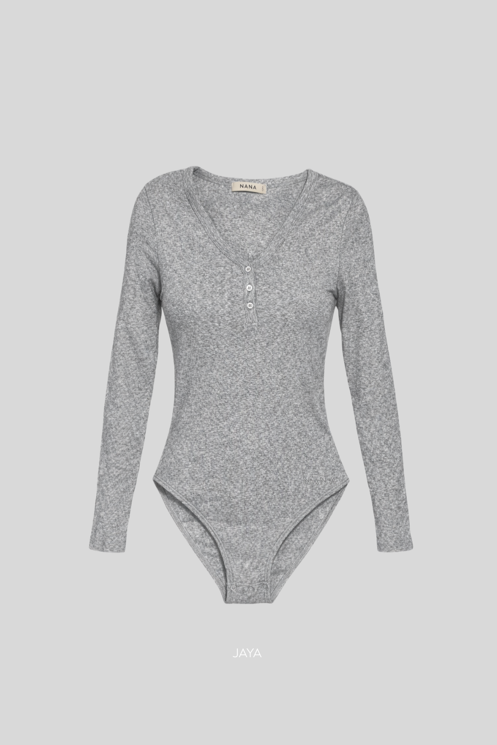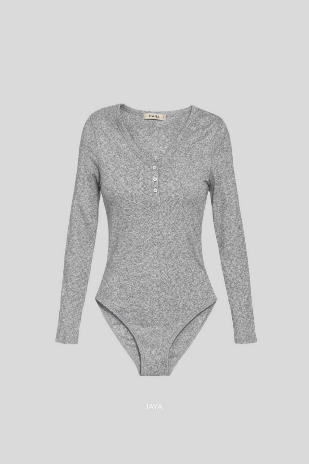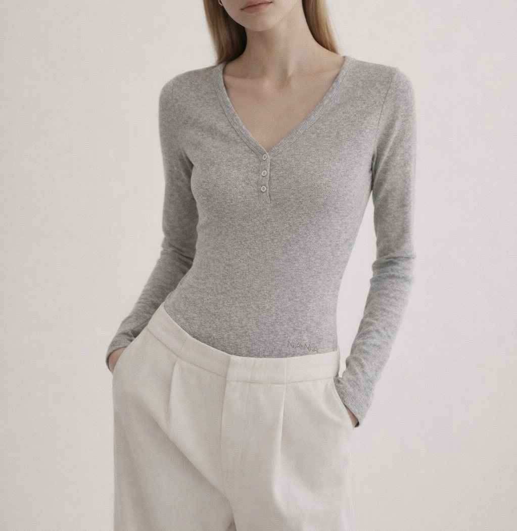 Designed for everyday wear with a refined, minimal approach, this snap-button bodysuit is defined by its clean lines and natural feel. Crafted from 100% cotton, it offers breathable comfort and a soft touch against the skin. The V-neckline and long sleeves create a timeless silhouette, while the close fit delivers a polished, modern look. An essential, seasonless piece—ideal worn on its own or layered with ease.