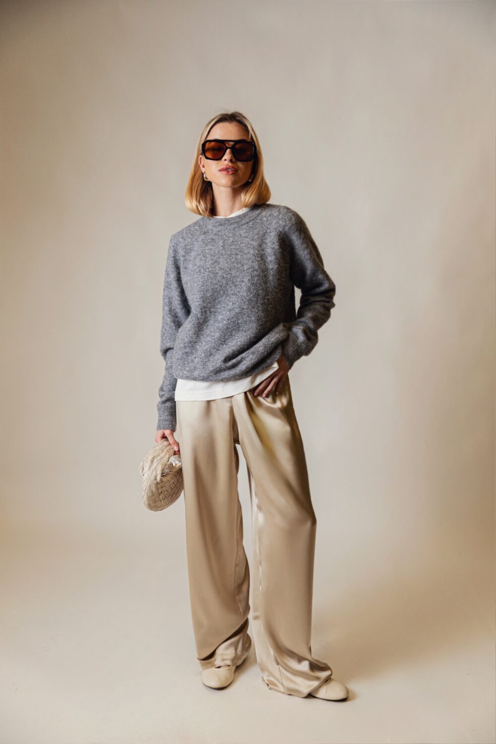 A modern interpretation of elegance, the Satin L’one Set adds a sophisticated touch to your style with the perfect harmony of satin trousers and a strapless crop design. Thanks to its special viscose and silk blend fabric, it feels soft and fluid against the skin, while the natural sheen of the satin texture creates an eye-catching silhouette in any setting. With its minimal and feminine lines, it offers effortless chic for both daytime elegance and evening occasions.