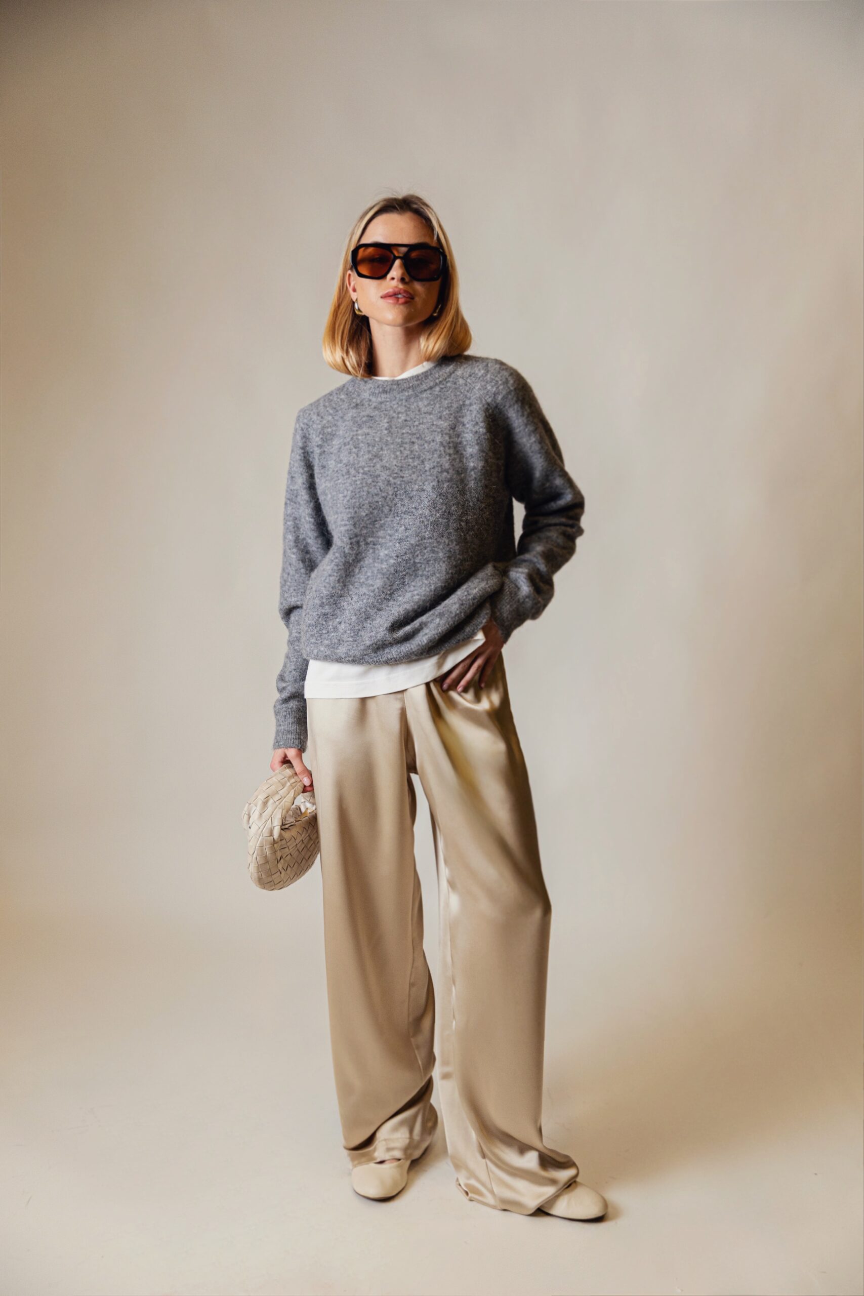 Zarafetin modern yorumu olan Satin L’one Set, saten pantolon ve straplez crop tasarımının kusursuz uyumuyla stilinize sofistike bir dokunuş katıyor. Viskon ve ipek karışımlı özel kumaşı sayesinde ciltte yumuşak ve akıcı bir his bırakırken, saten dokusunun doğal ışıltısı her ortamda göz alıcı bir siluet oluşturur. Minimal ve feminen çizgileriyle hem gündüz şıklığında hem de akşam davetlerinde zahmetsiz bir şıklık sunar.