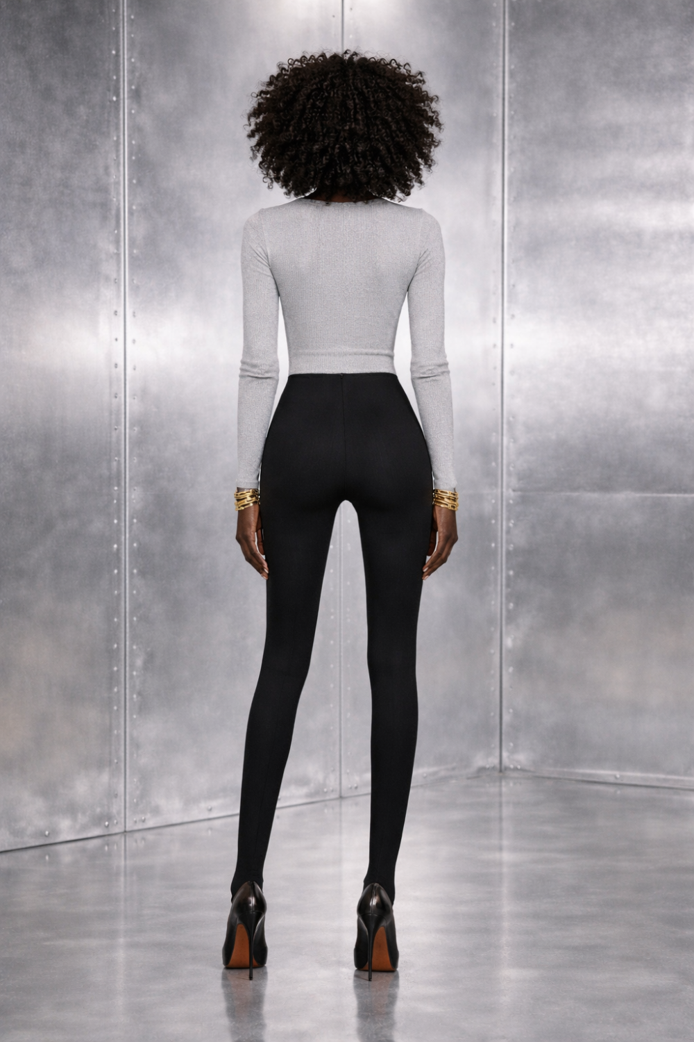 A clean take on timeless elegance. With its flawless fit and fluid silhouette, the black leggings are a modern, powerful, and effortlessly luxurious essential.